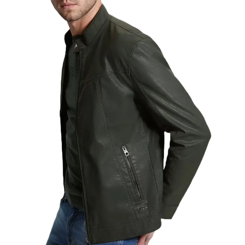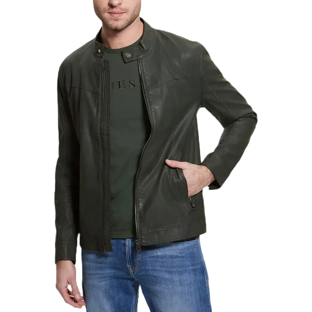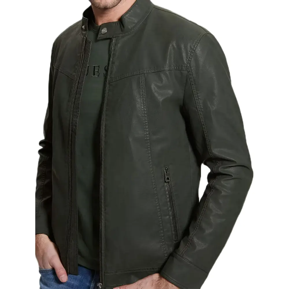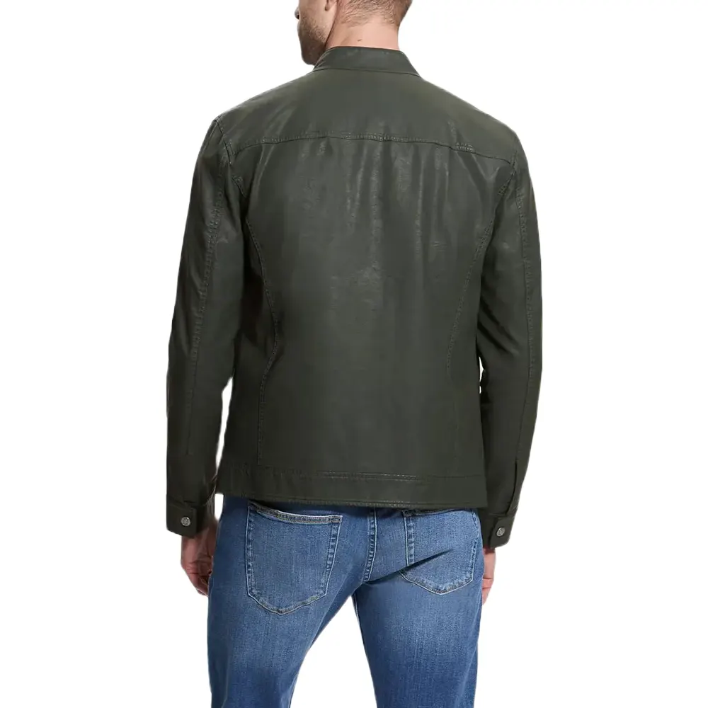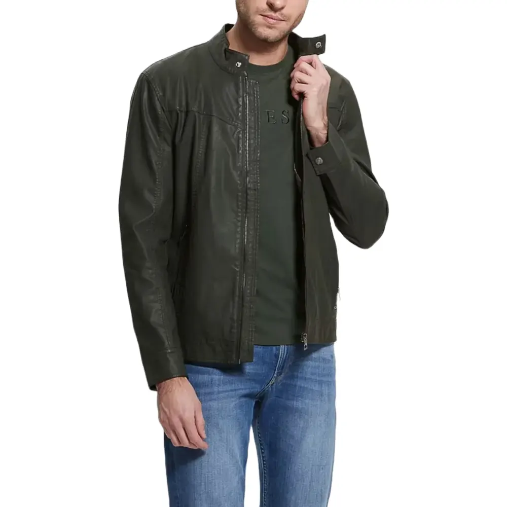 Men’s Vintage Green Faux Leather Biker Jacket
