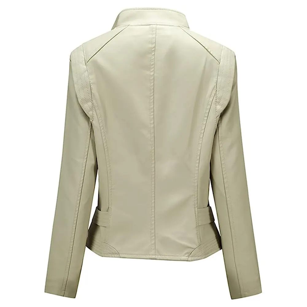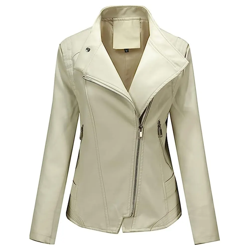 Women’s Asymmetric Beige Faux Leather Slim Fit Jacket