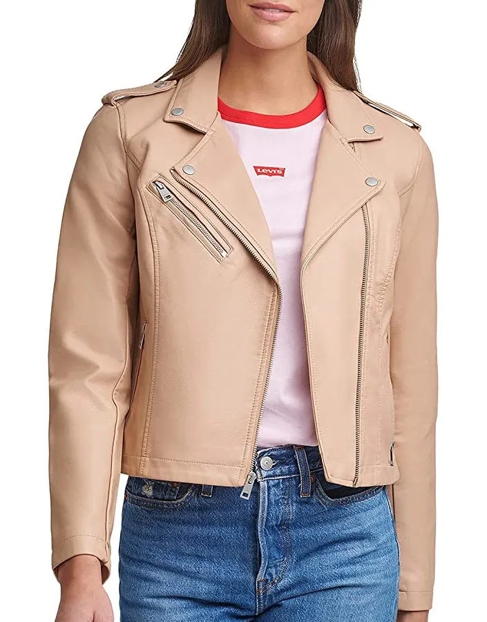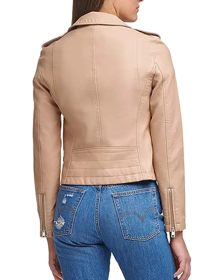 A zipper faux leather jacket is an exemplary addition to your wardrobe! Crafted with precision, this jacket boasts both timeless elegance and modern edge thanks to its sophisticated biscotti faux leather exterior with its attractive asymmetrical zipper design; perfect for effortlessly elevating any ensemble day or night!