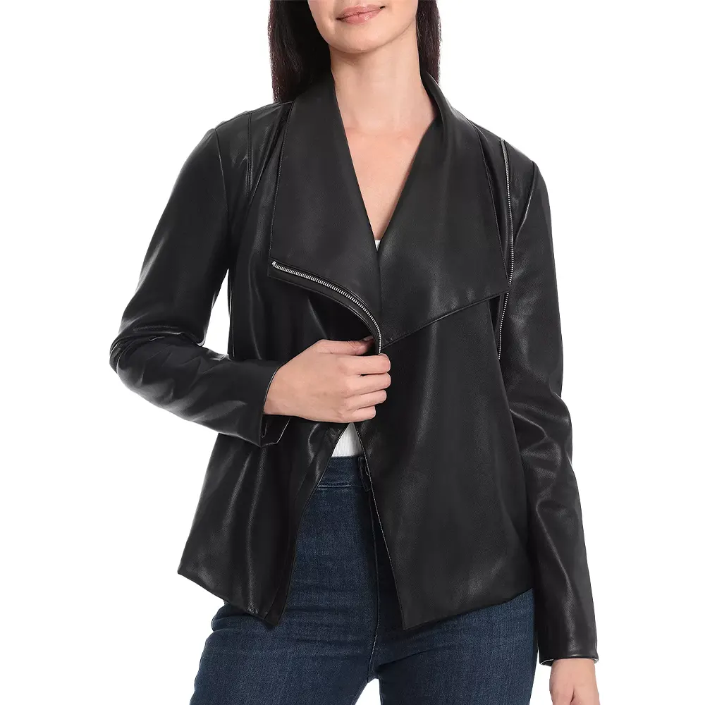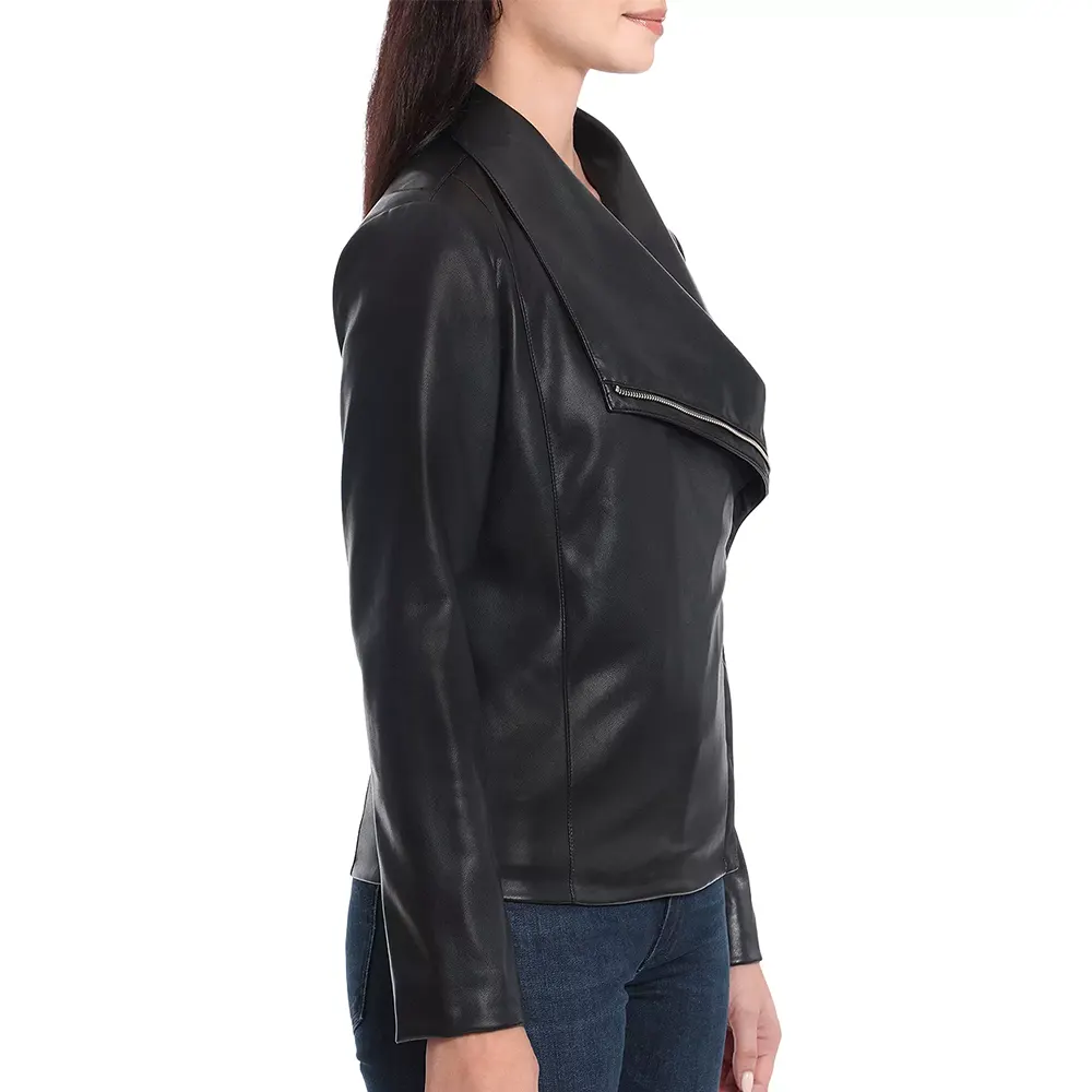 Revel in effortless elegance with the womens draped jacket! Crafted from premium faux leather and featuring an innovative draped front design that adds fluidity and movement to any ensemble, its smooth black finish further elevates modernity while its zipper front allows easy layering – ideal for transitioning effortlessly from day to night wear! Ideal for transitional outfits such as causal jeans and dressy attire alike – its comfortable yet chic fit offers a versatile style suitable for fashion-conscious individuals looking to stay chic at all times.