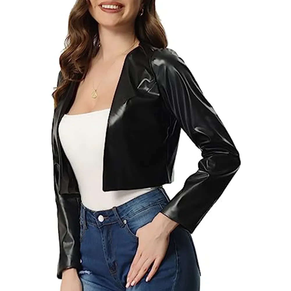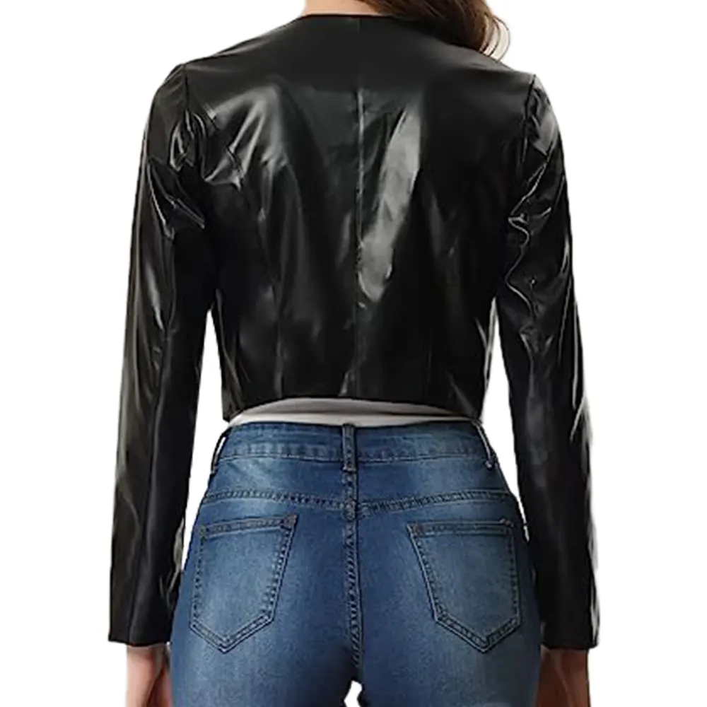 Women’s Black Open Front Faux Leather Jacket