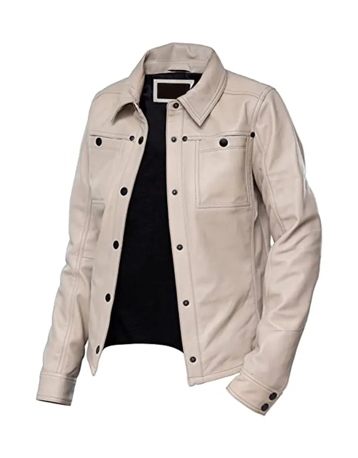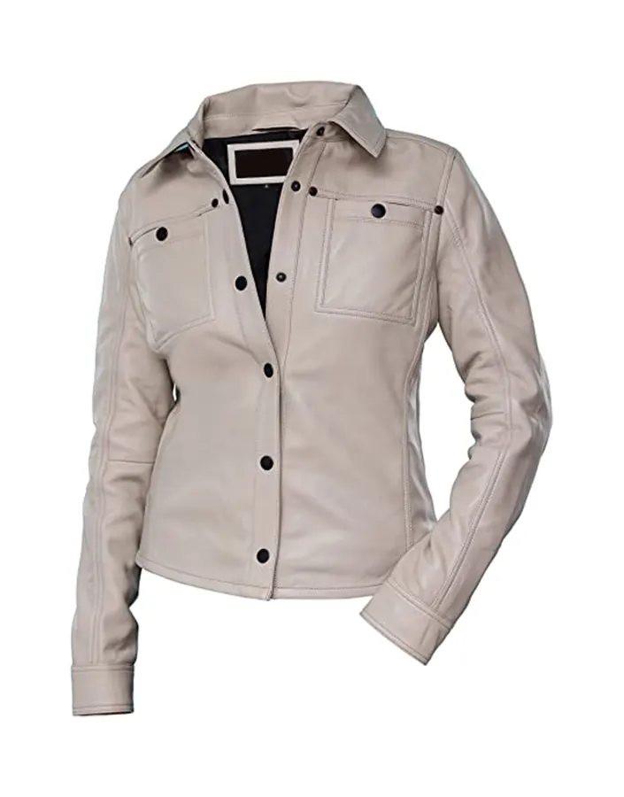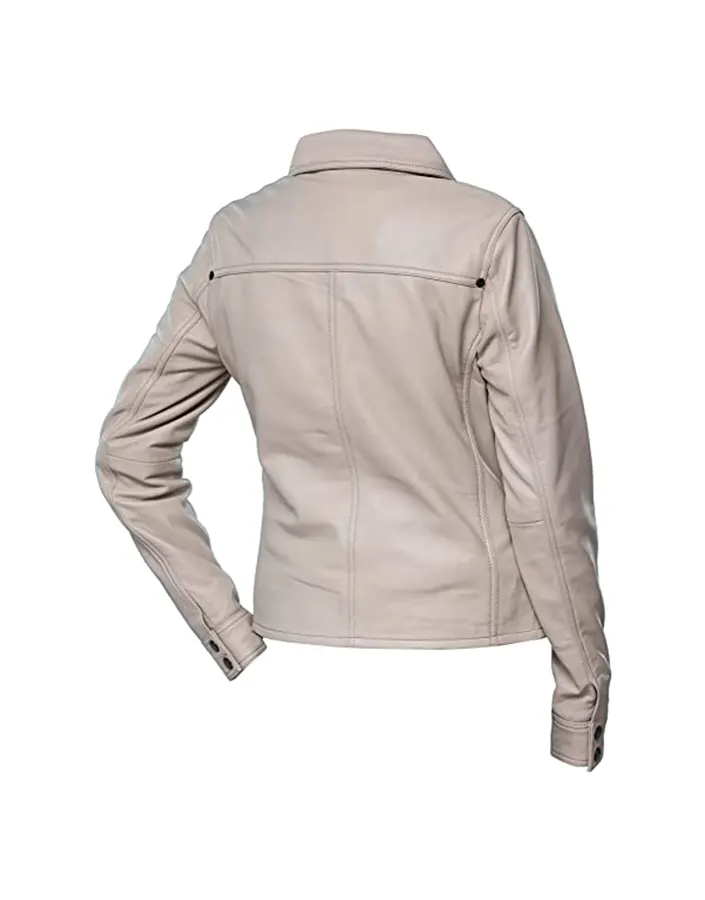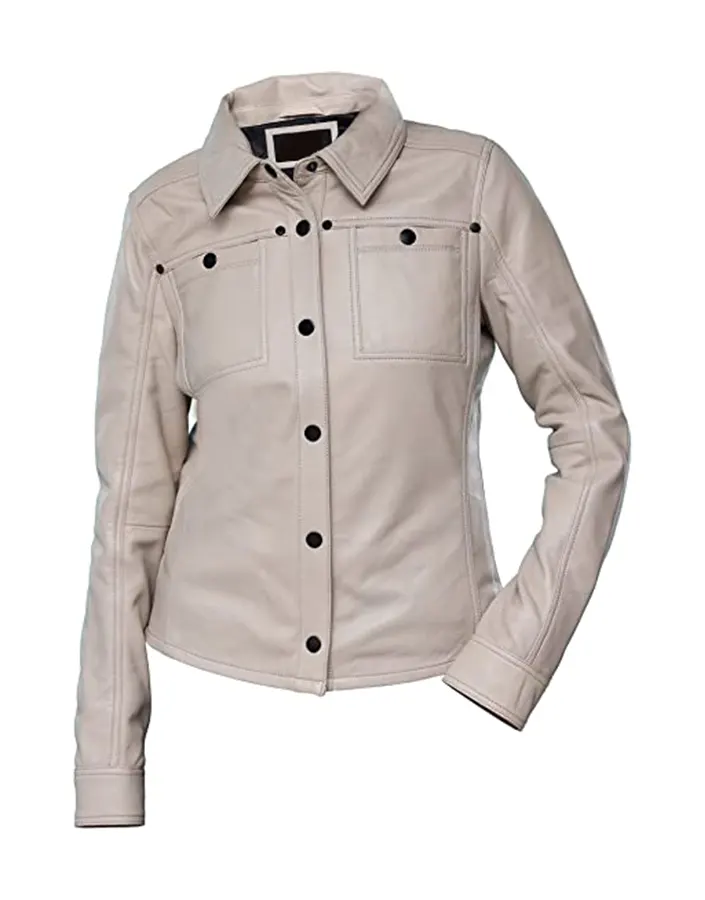 Beige leather jacket womens an iconic essential. Crafted to perfection, this beautiful piece boasts an eye-catching beige faux leather exterior and classic button-front design, giving this chic piece the ability to elevate any ensemble effortlessly. Perfect for all your special events.