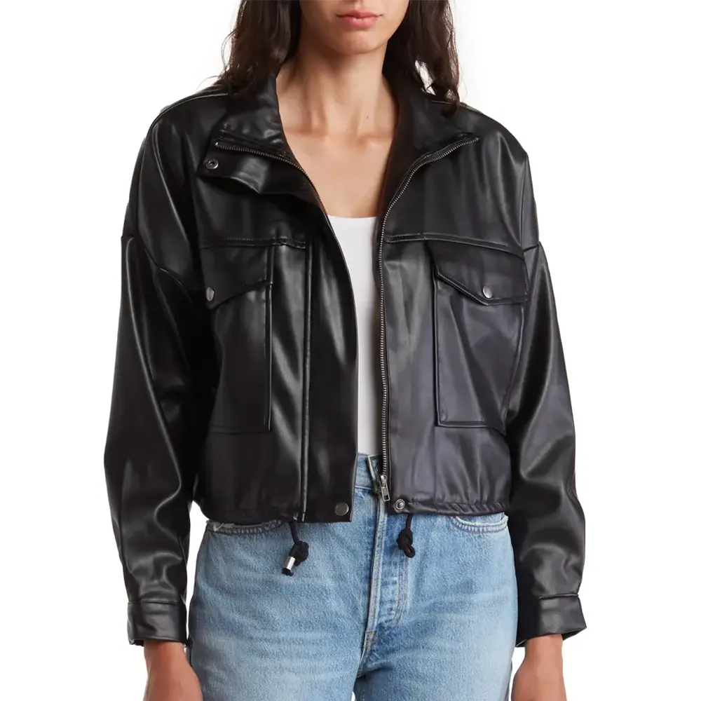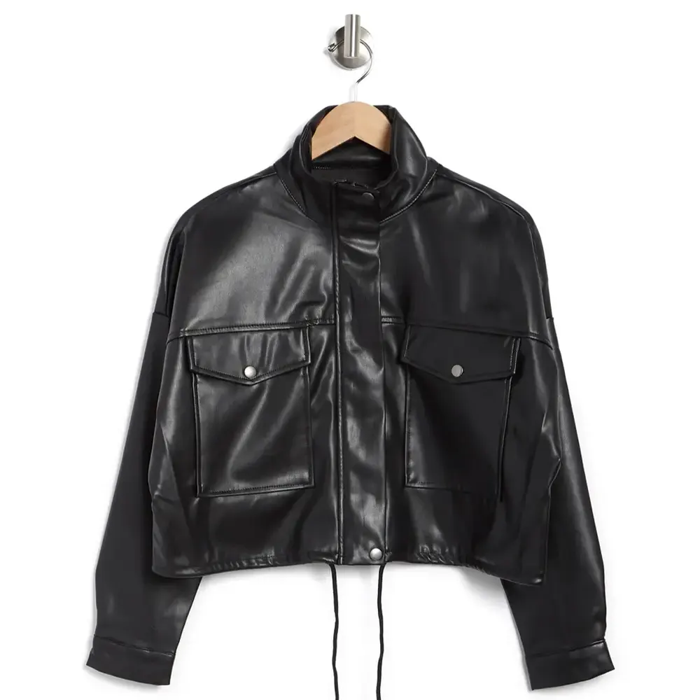 Make an impactful statement with the black crop jacket! Designed from high-quality faux leather for durability with a luxurious feel and featuring an eye-catching cropped silhouette to elongate your waistline while offering sleek modernity, it features an eye-catching zippered front design featuring minimalistic elements & stylish cropped cut that pairs effortlessly with high-waisted jeans or skirts – the black crop jacket adds flair and fashion-forward sophistication in one sleek piece!