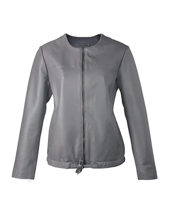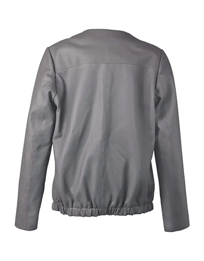 Women’s Grey Faux Leather Collarless Jacket