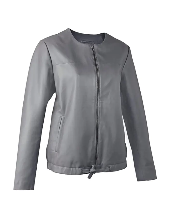 Be the first to review “Women’s Grey Faux Leather Collarless Jacket”