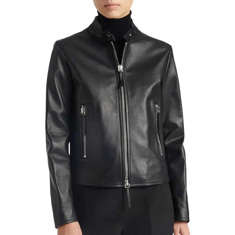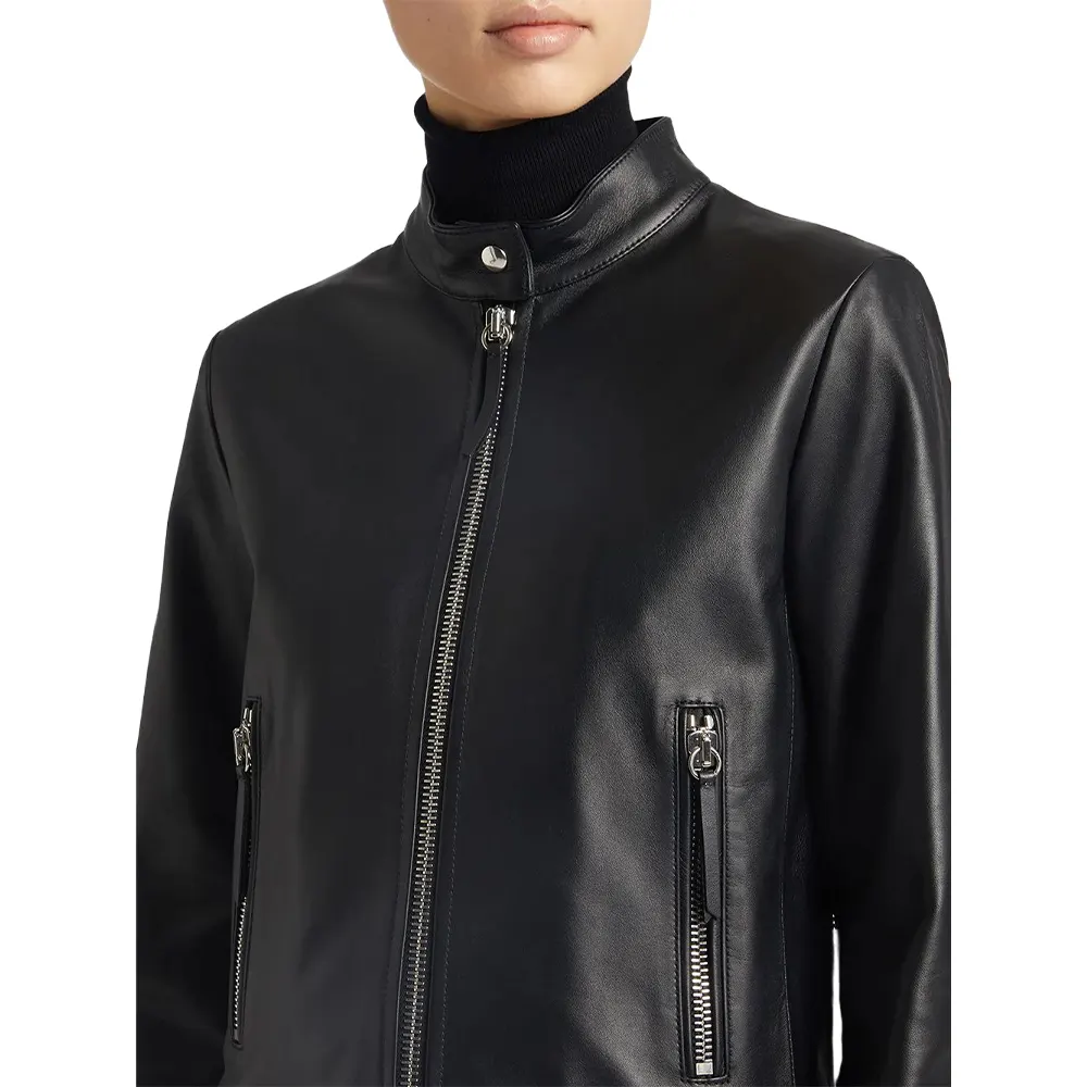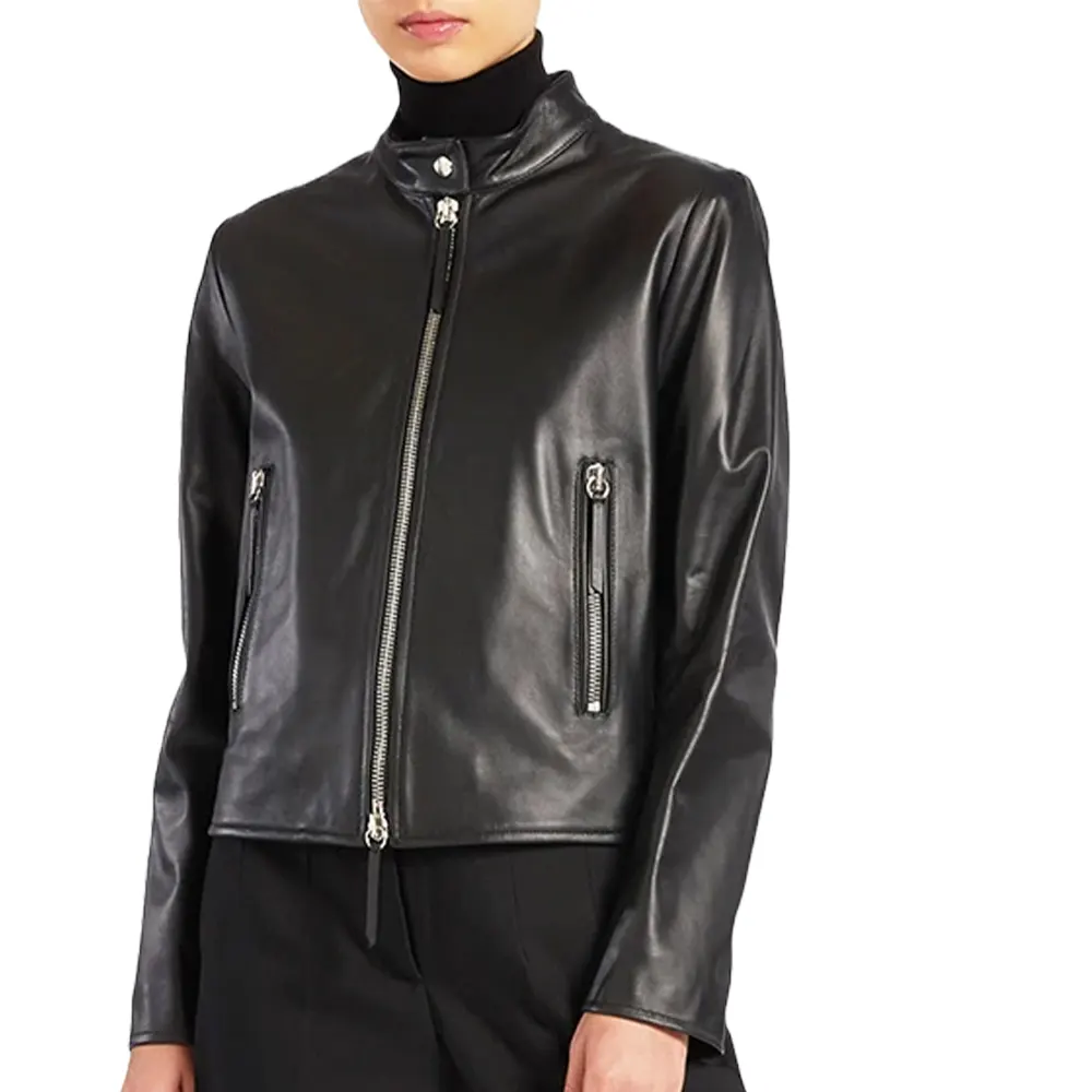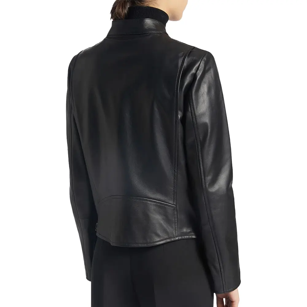 Women’s High Neck Black Faux Leather Jacket