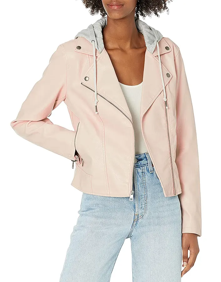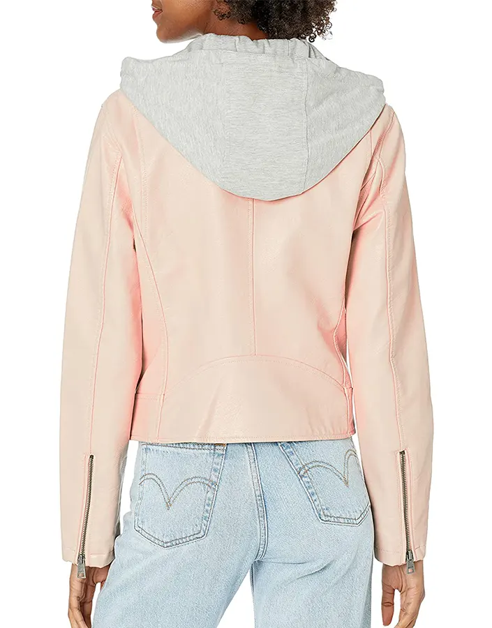 Women’s Hooded Peach Faux Leather Jacket