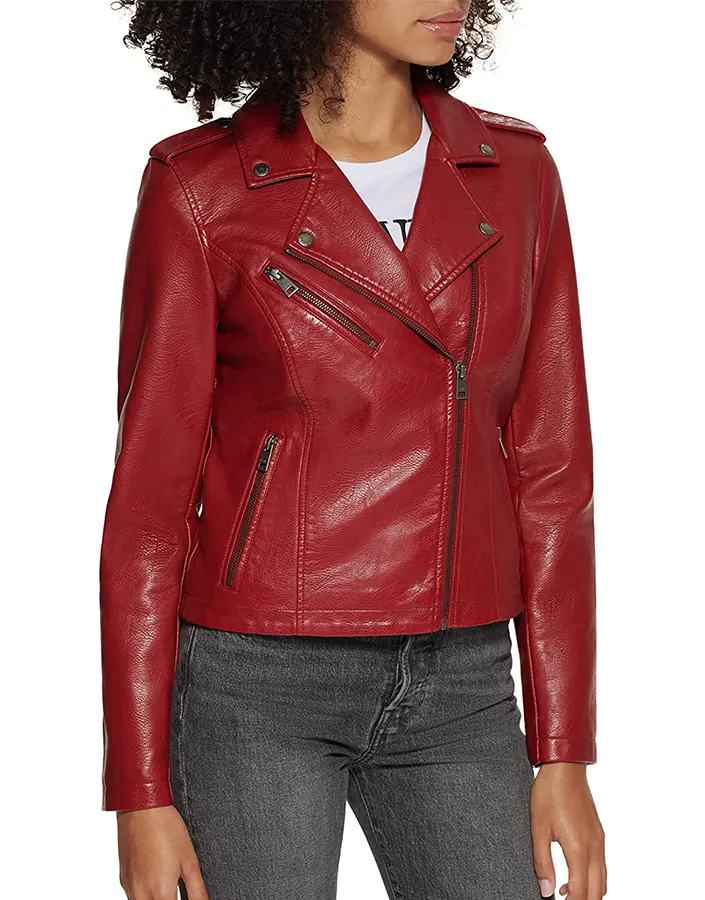 The maroon leather jacket is an eye-catching statement piece. Crafted with precision, it boasts a rich maroon faux leather exterior and a modern yet edgy aesthetic that provides both sophistication and edge – ideal for adding some bold color and attitude to any ensemble!