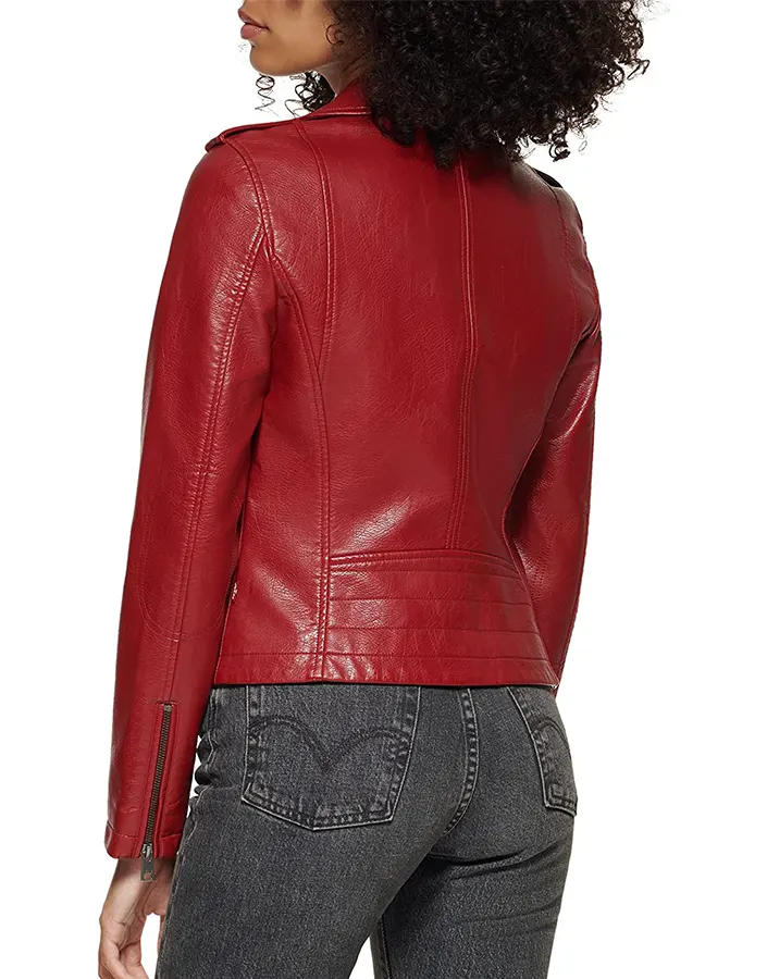 Women’s Maroon Faux Leather Asymmetrical Zipper Jacket
