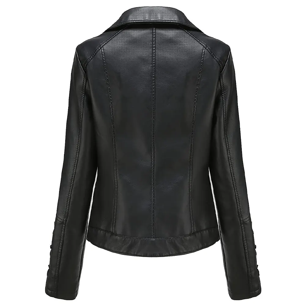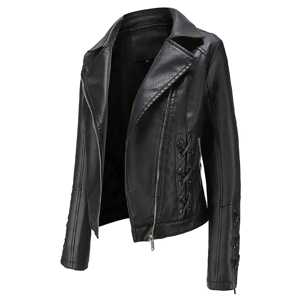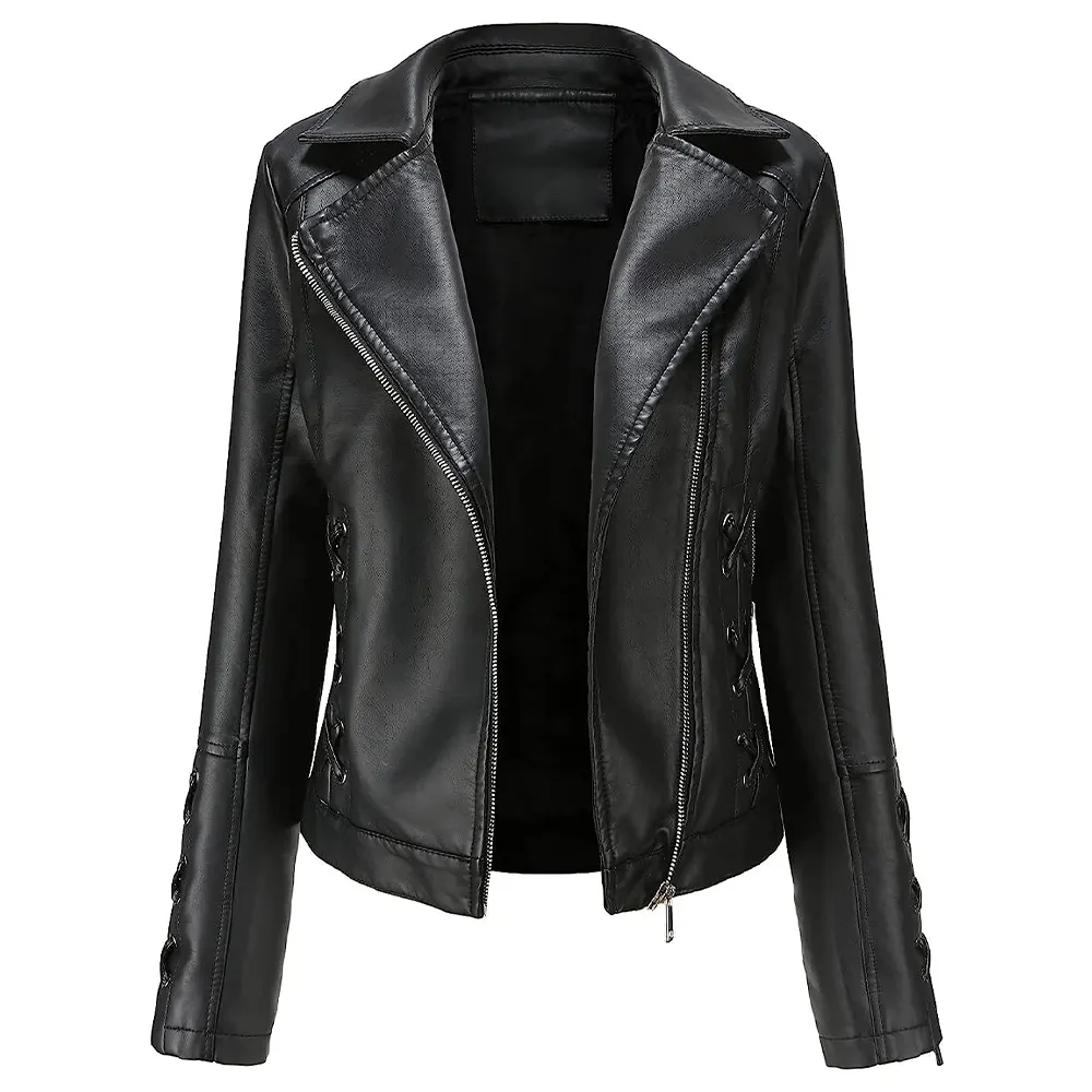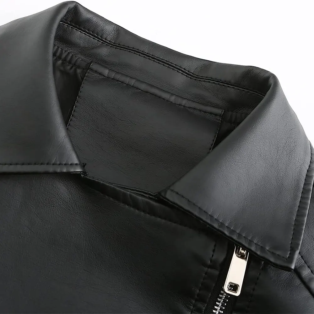 Women’s Slim Fit Black Faux Leather Zip Up Jacket