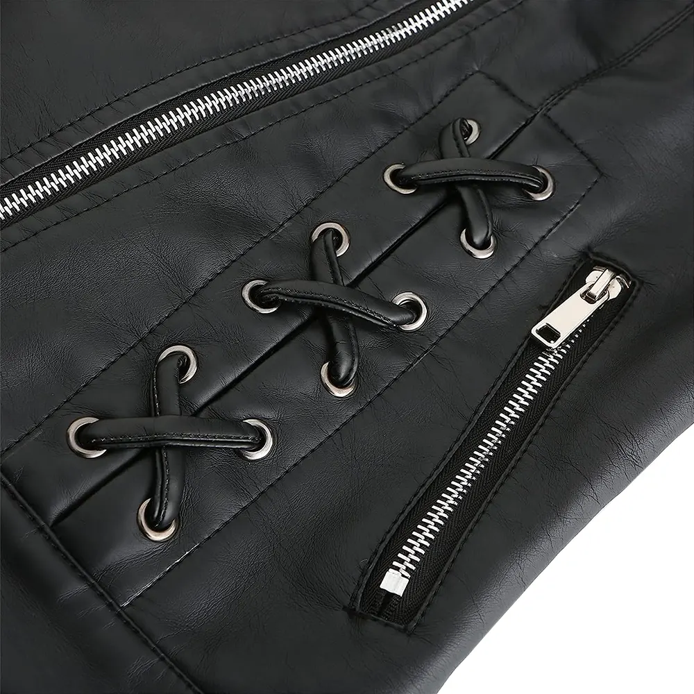 - Front: Asymmetrical Zipper Closure