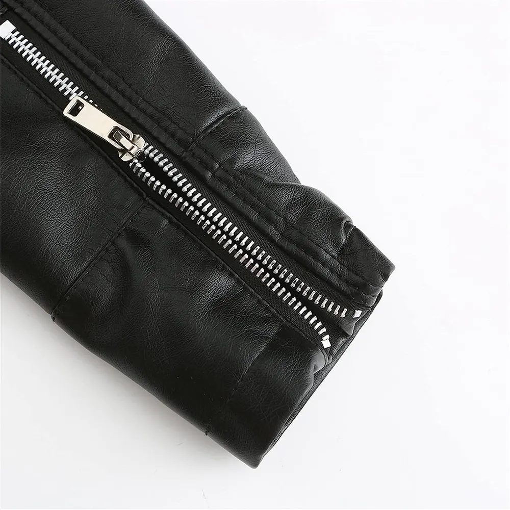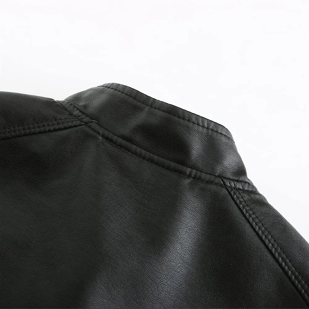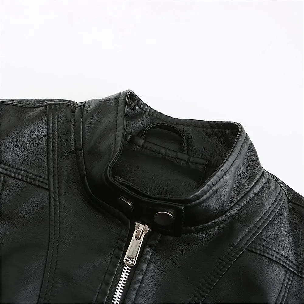 Be the first to review “Women’s Stand Collar Black Faux Leather Short Jacket”