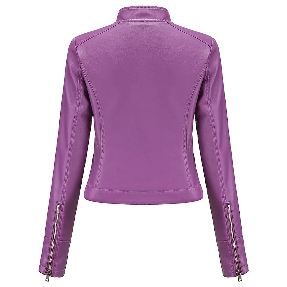 Women’s Stand Collar Purple Faux Leather Short Jacket
