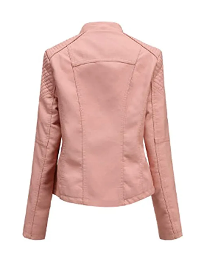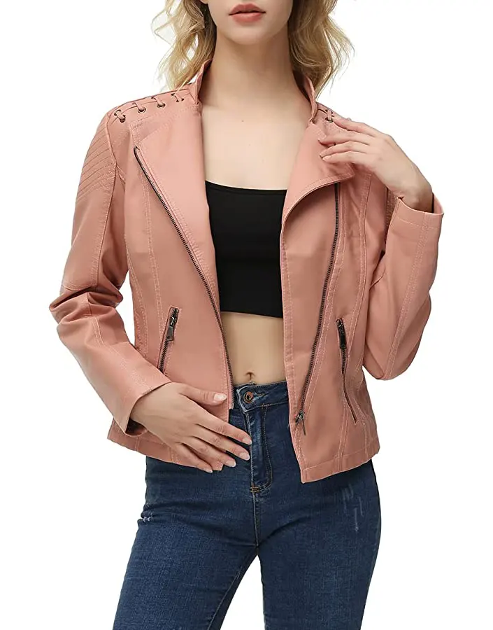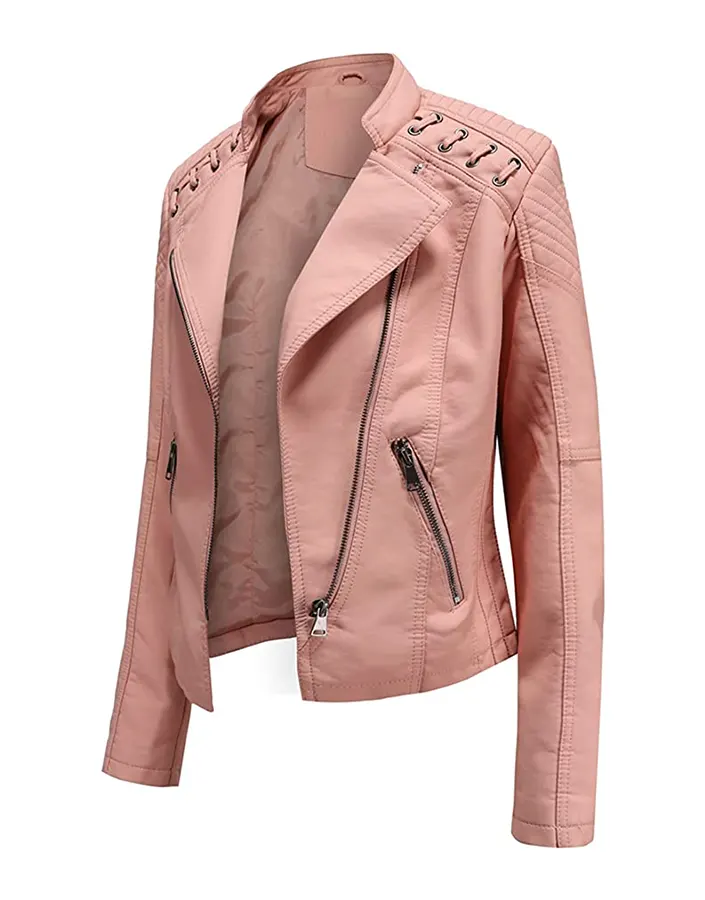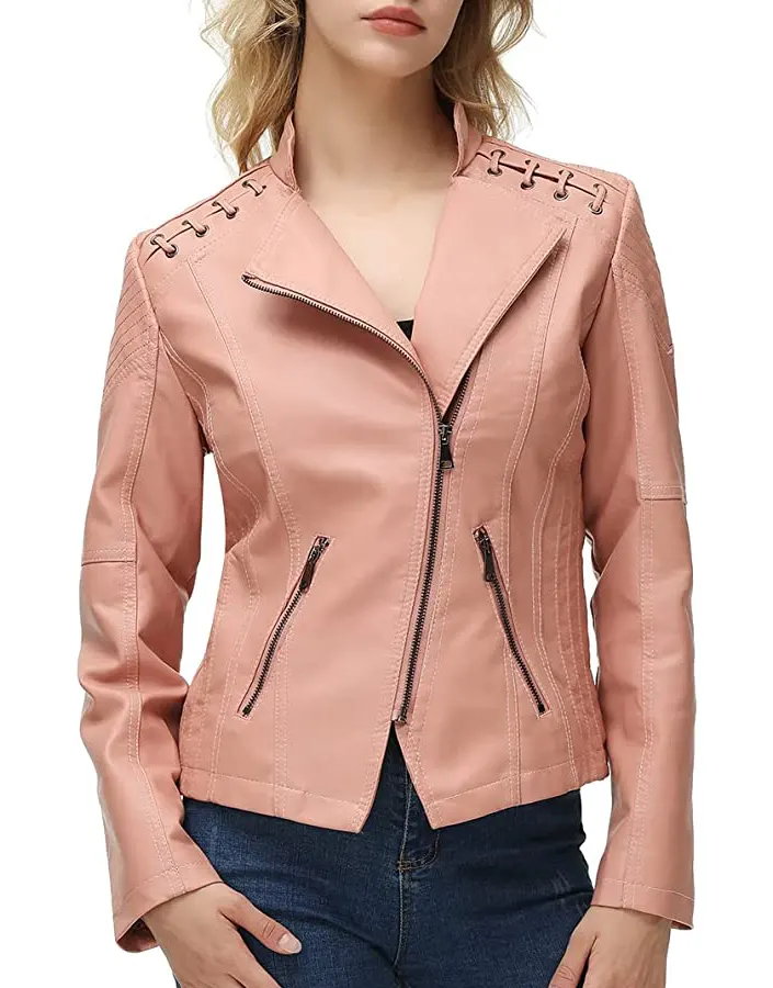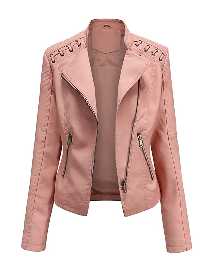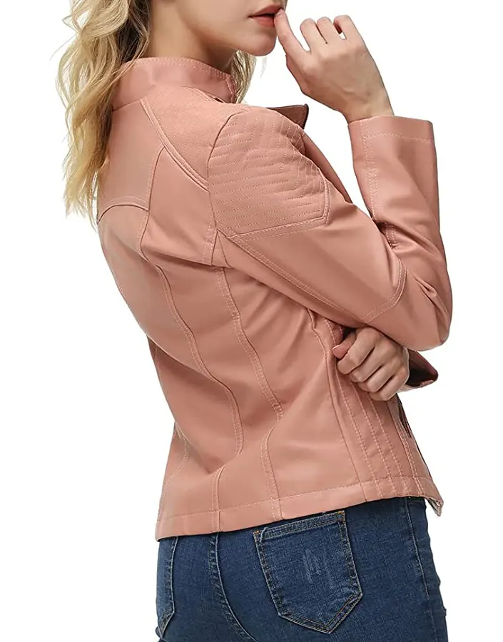 Womens peach jacket is an eye-catching addition to any modern woman’s wardrobe! Crafted to precision, this piece boasts elegant string shoulder details and an eye-catching soft peach faux leather exterior for both modern and feminine charm – ideal for adding contemporary style to any ensemble!
