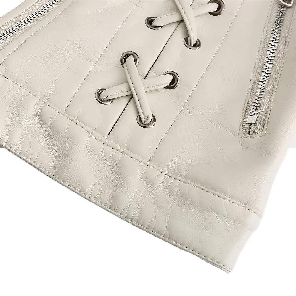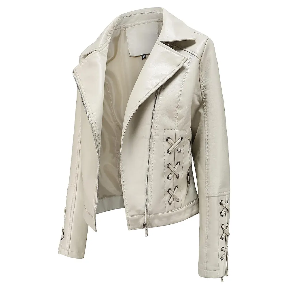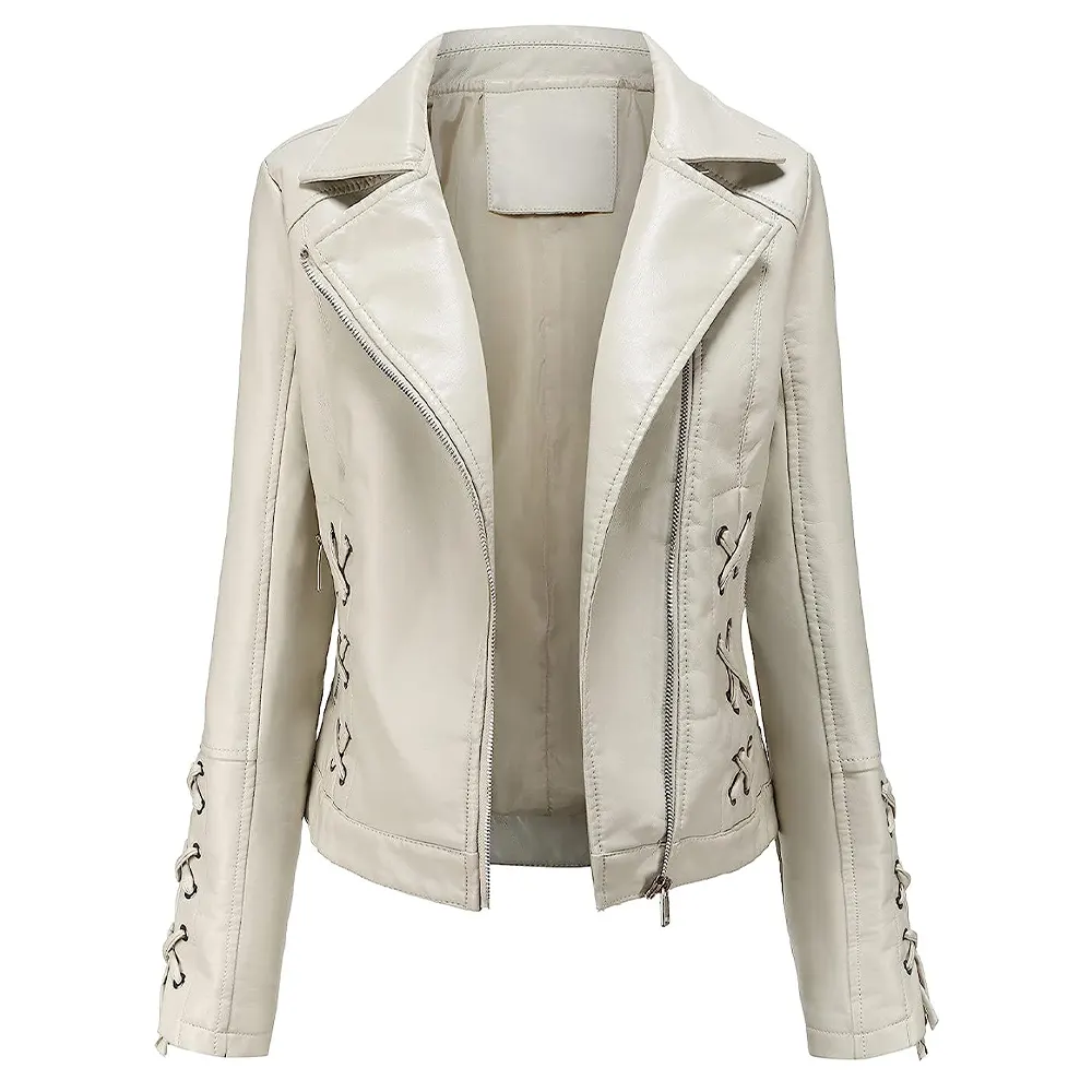 Women’s Zip Up Beige Faux Leather Slim Fit Jacket