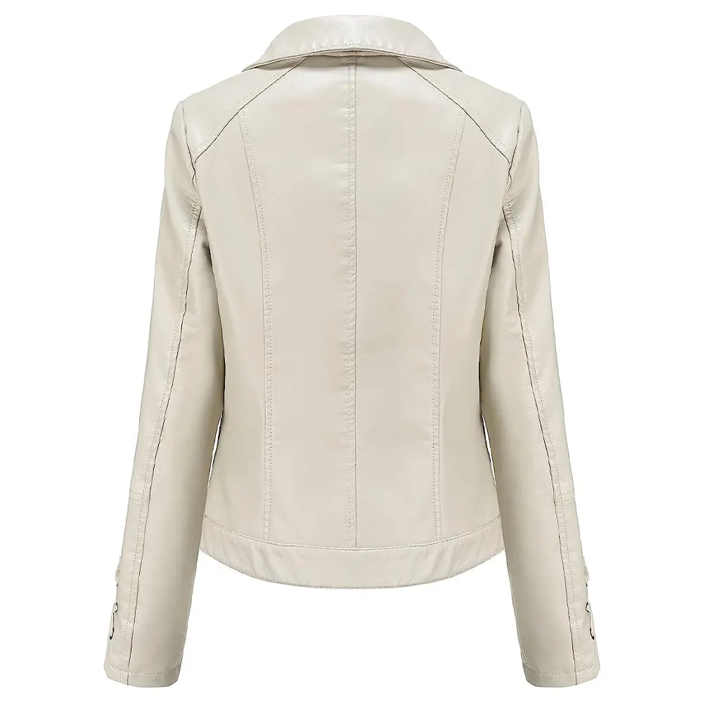 Be the first to review “Women’s Zip Up Beige Faux Leather Slim Fit Jacket”